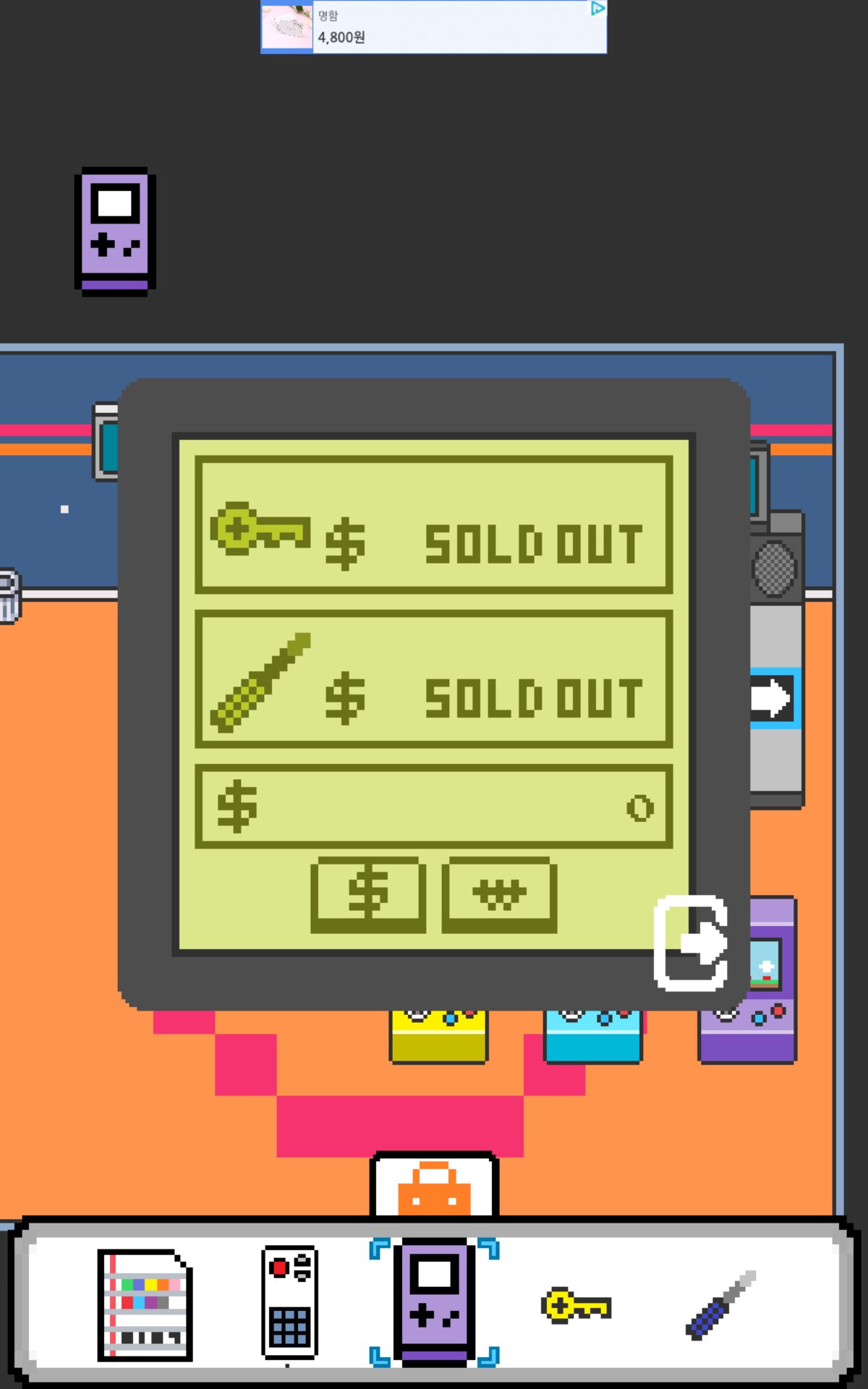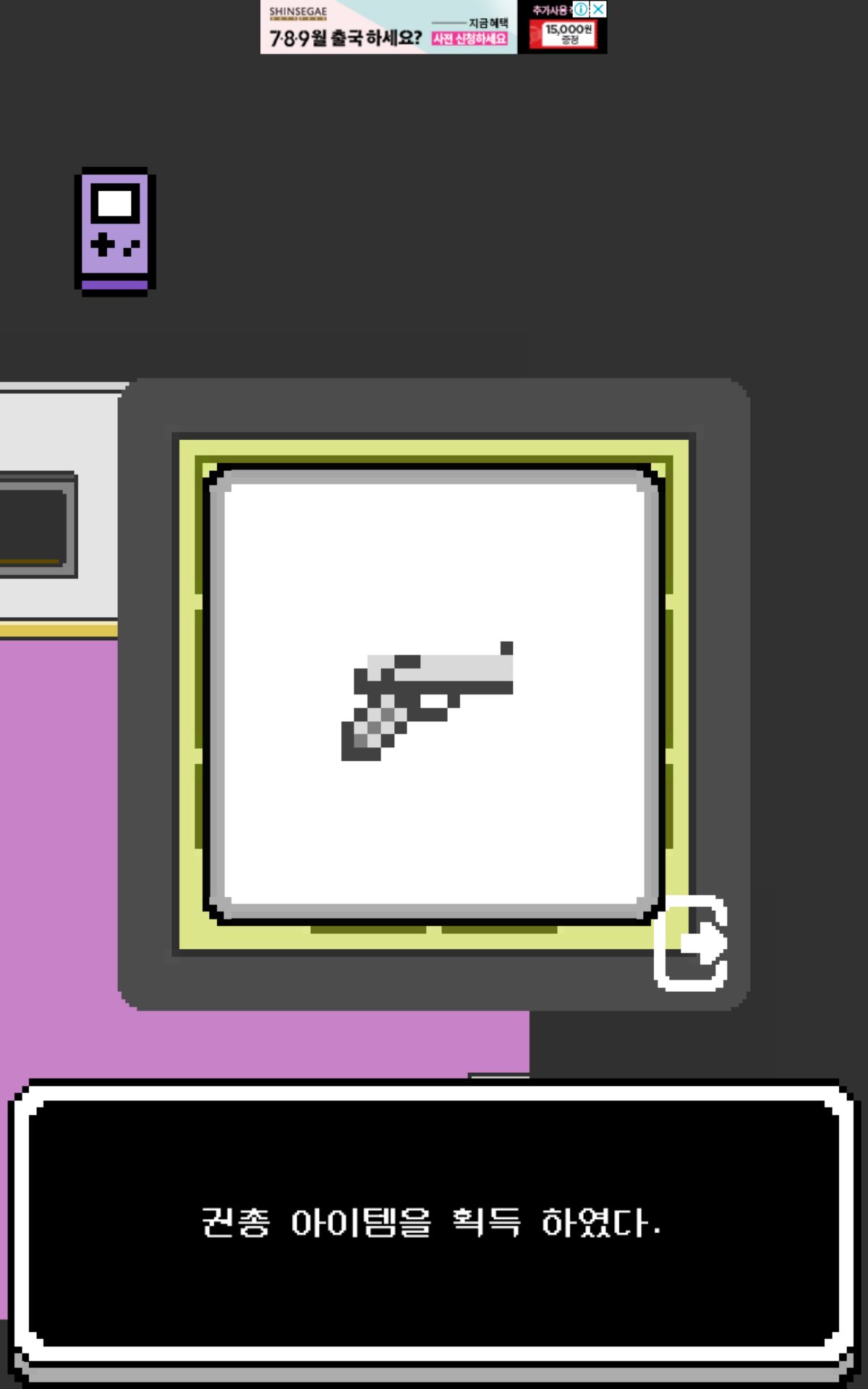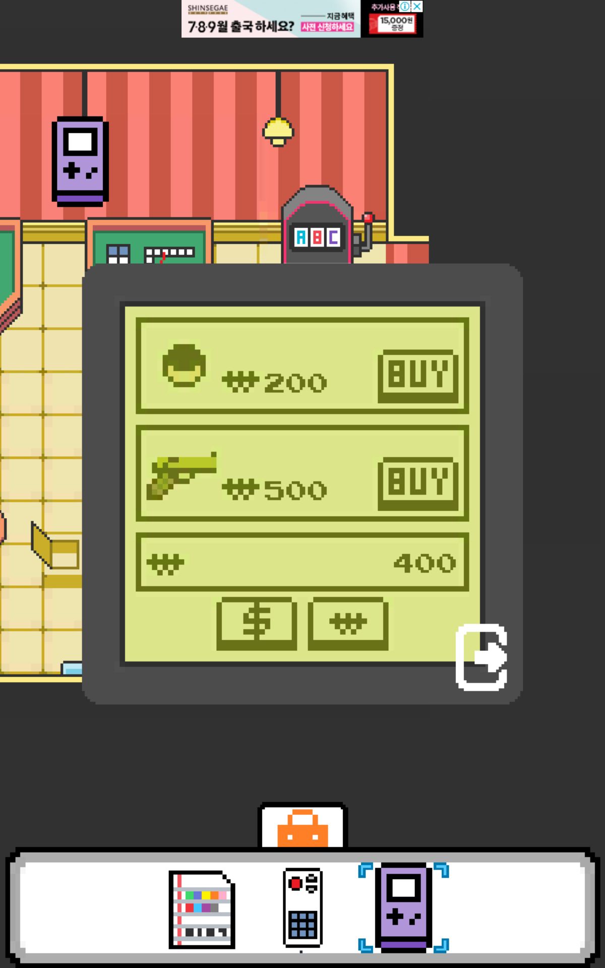 끝나면 자판기에서 500원이 나오고 아까 휴대용 게임기에서 권총을 구입해주시면 됩니다.