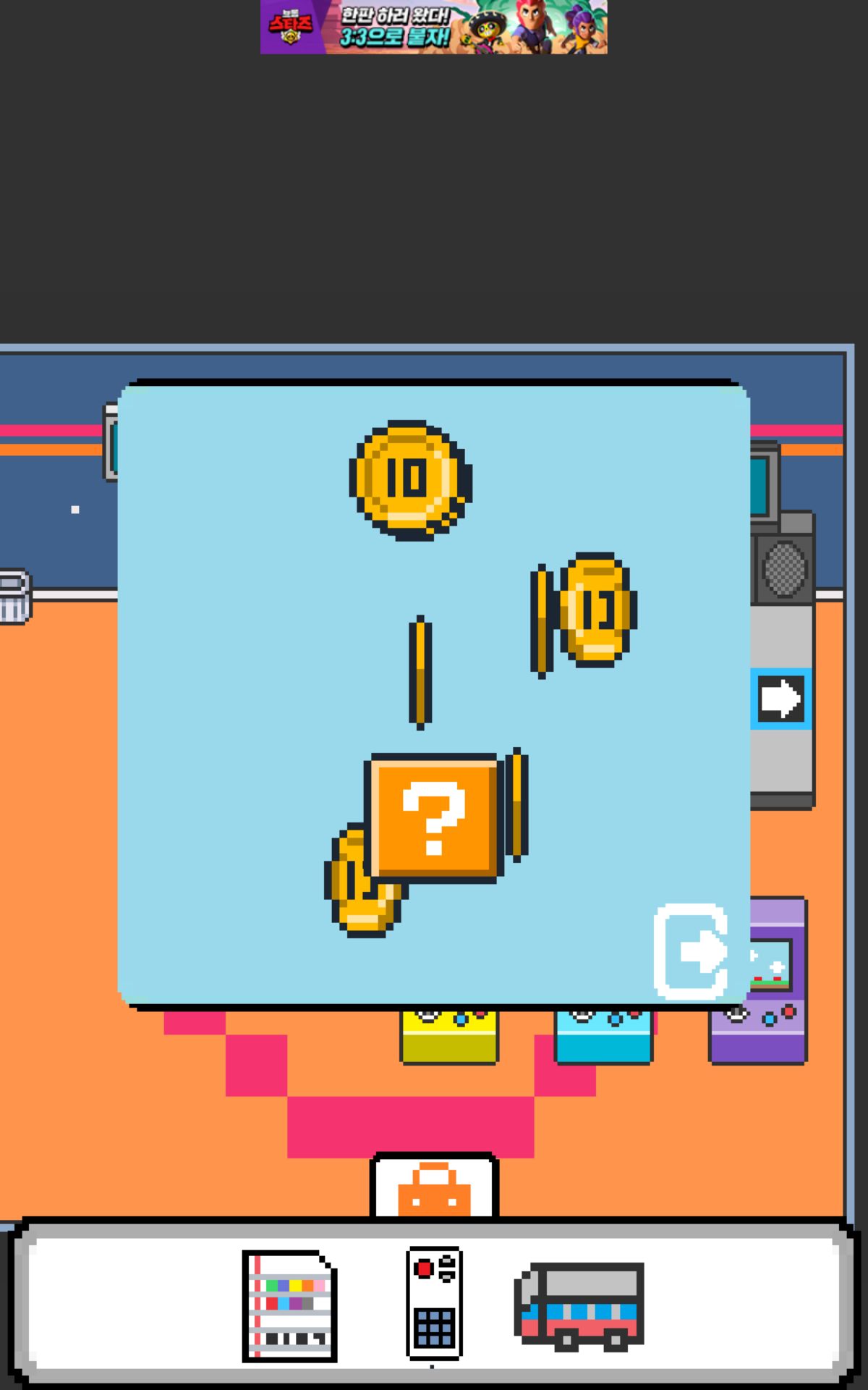 게임기에 들어가서 물음표를 누르면 10달러씩 얻을 수 있습니다.