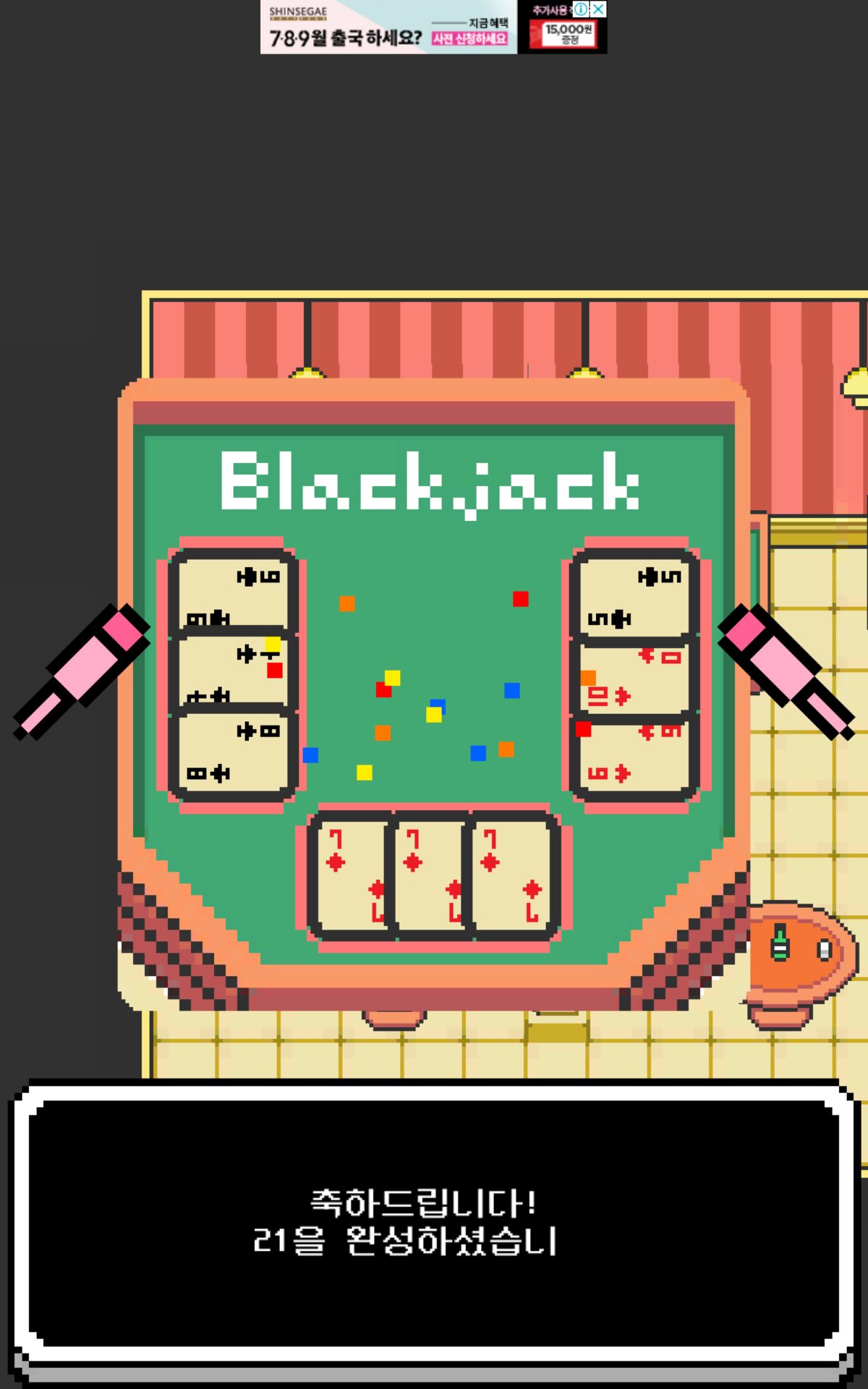 아까 왼쪽방에서 나온 블랙잭은 3개의 그룹이 각각 21이 나오도록 만드는 게임이고,
